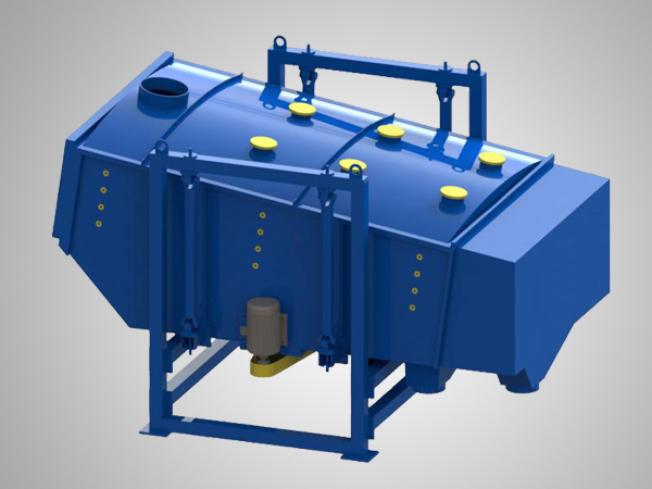 設(shè)備運(yùn)行后,由于箱體產(chǎn)生的慣性力,推動(dòng)物料在篩布上做往復(fù)跳躍運(yùn)動(dòng),小于篩孔的物料落下,從既定出料口排出;大于篩孔的物料則持續(xù)向前運(yùn)動(dòng),直至排出。